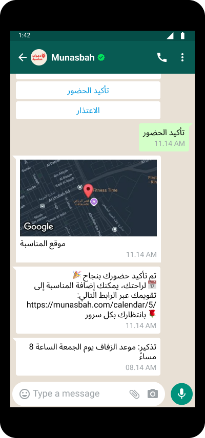 - التذكير الذكي: يتم إرساله تلقائيًا عبر منصات متخصصة مثل مناسبة.